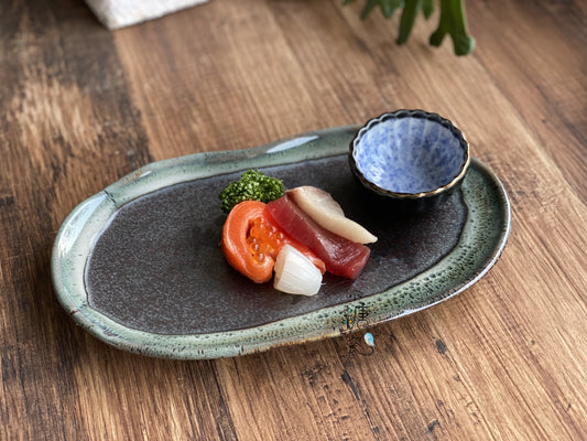 小糖瓷|日本製 🈴️ [板前料理][日式料理] 天目綠窯邊橢圓盤