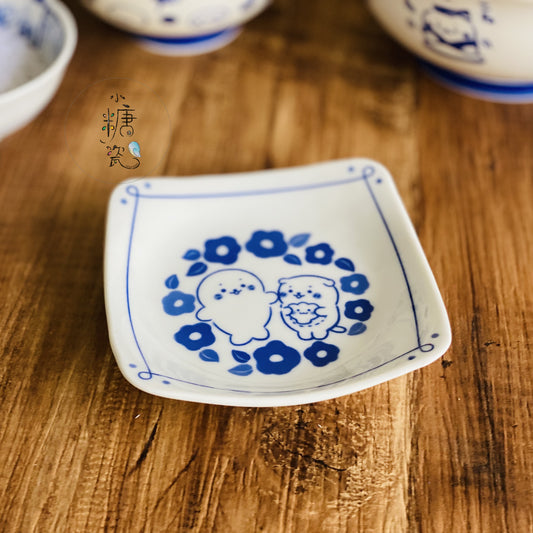 小糖瓷|日本製 [SAN-X] MAMEGOMA 美濃燒 海豹寶寶日式四方碟/點心盤/蛋糕盤