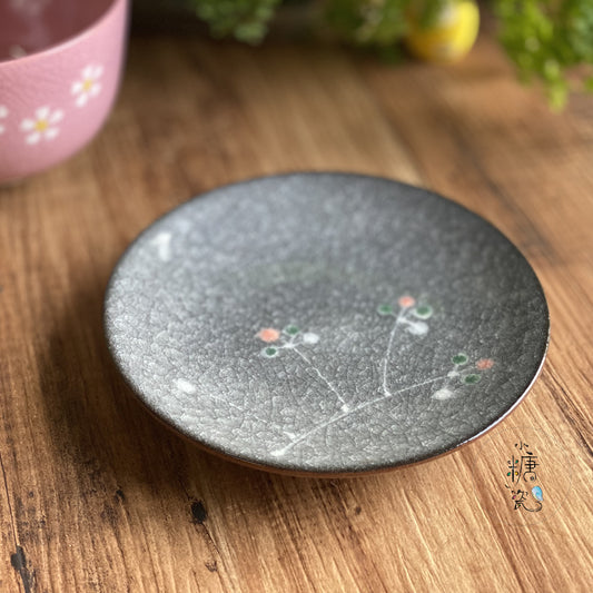 小糖瓷|日本製 陶作冰裂釉小花點點心盤/小菜盤