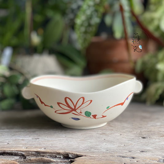 小糖瓷|日本製 橘吉赤繪手作雙耳鉢/盛菜盤/咖哩盤