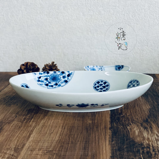 小糖瓷|日本製 [FUIADR] 復刻十草幸運點點橢圓湯盤(兩色)
