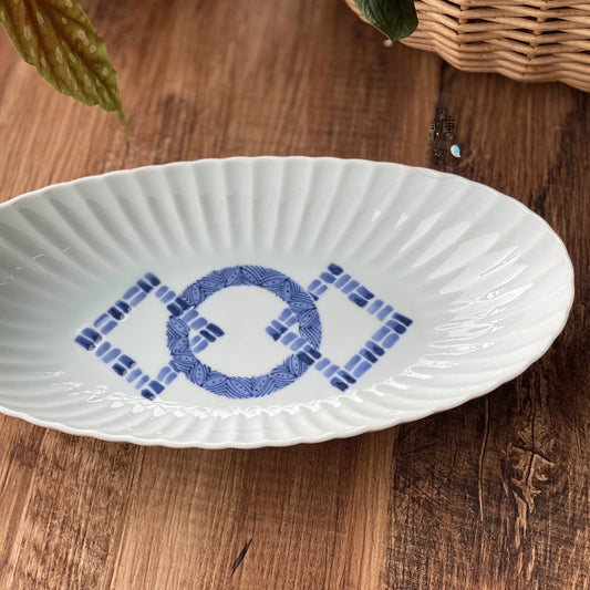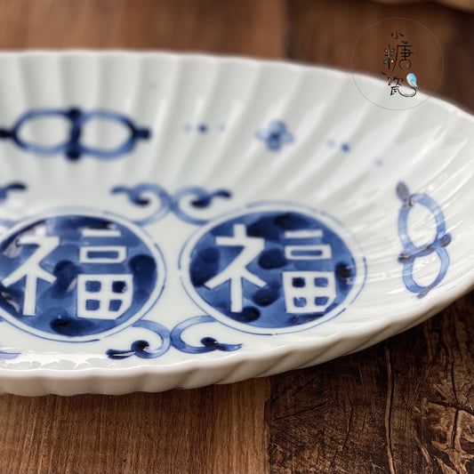 小糖瓷|日本製 三福字圓滿菊形橢圓長盤/魚盤/盛菜盤
