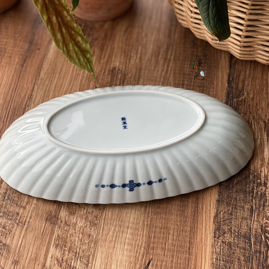 小糖瓷|日本製 藍凜堂菊形橢圓長盤/魚盤/盛菜盤
