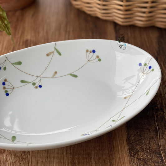 小糖瓷|日本製 素雅小花系列之橢圓長盤/盛魚盤/盛菜盤