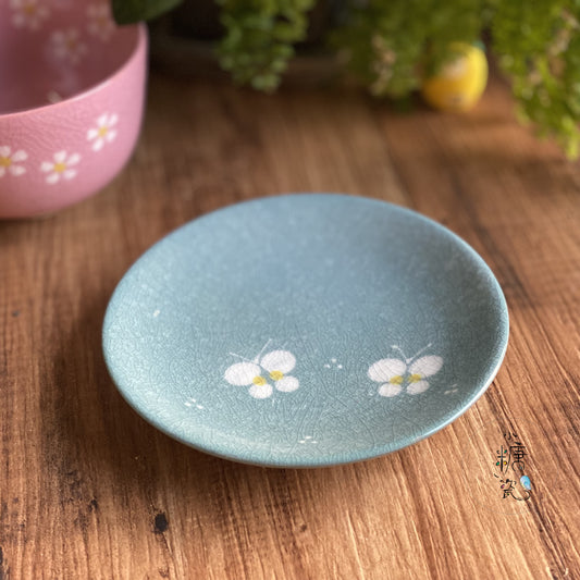 小糖瓷|日本製 陶作冰裂釉蝶飛點心盤/小菜盤