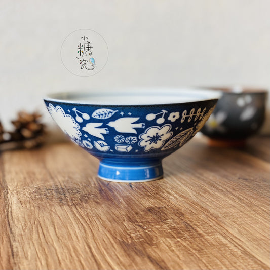 小糖瓷|日本製 北歐鄉村圖騰青鳥不沾飯毛料碗/飯碗/迷你丼飯碗
