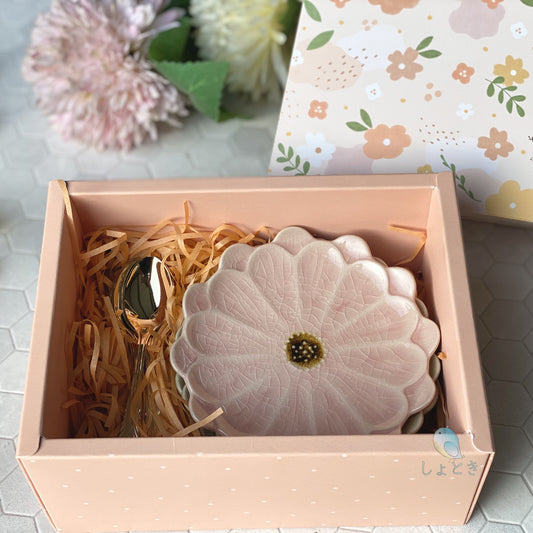小糖瓷|日本製 🈴 花言葉貫入點心碟五入禮盒組(附5入金湯匙)/和菓子/蛋糕碟/小盤