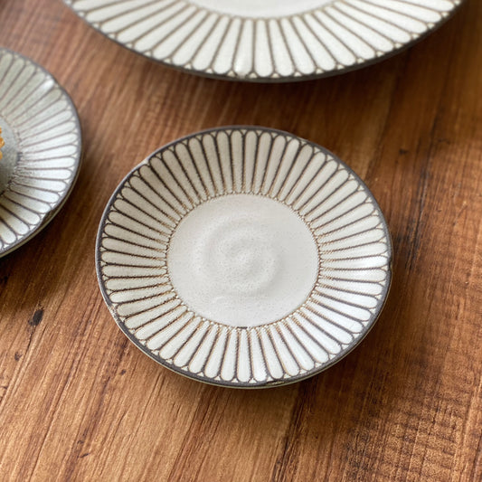 小糖瓷|日本製 光彩花盤系列/粉引菊割花盤/小圓碟