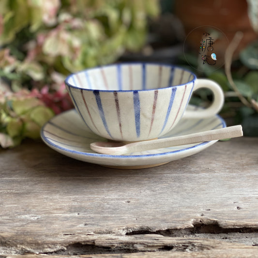 小糖瓷|日本製 陶作雙色十草咖啡杯碟